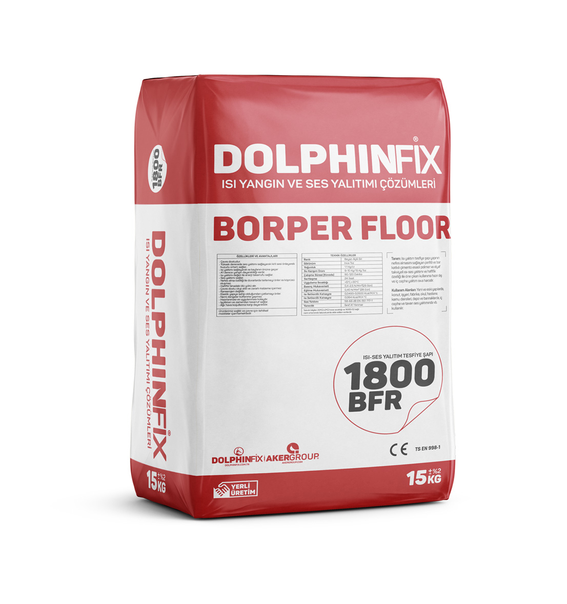 BORPER FLOOR – 1800 BFR Isı yalıtım tesfiye şapı yapının nefes almasını sağlayan perlitli ve bor katkılı çimento esaslı polimer ve elyaf takviyeli ısı-ses yalıtımı ve hafiflik özelliği ile öne çıkan kullanıma hazır dış ve iç cephe yalıtım sıva harcıdır.